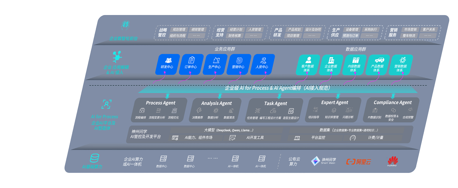 君临国际问学智车解决方案是一套基于AI技术的汽车行业智能化系统,,覆盖从底层算力到顶层AI应用的全栈方案。。。方案由算力层、、模型层和应用层组成:算力层,,方案支持多种一体机配置,,,,具备云端灵活部署、、、多云适配以及动态优化计算资源的能力;模型层,,君临国际问学平台版提供了企业级AI应用一站式构建与管理平台,,,支持基于后训练强化技术的汽车企业专属模型的训练、、、、评测和运营;应用层,,君临国际问学DeepSeek版提供包括超级员工、、、、智能招采、、智能营销、、、、智能客服、、、、AI for BI等一系列解决方案,,,可助力汽车行业实现数字化转型,,让管理更智能、、、响应更敏捷。。。